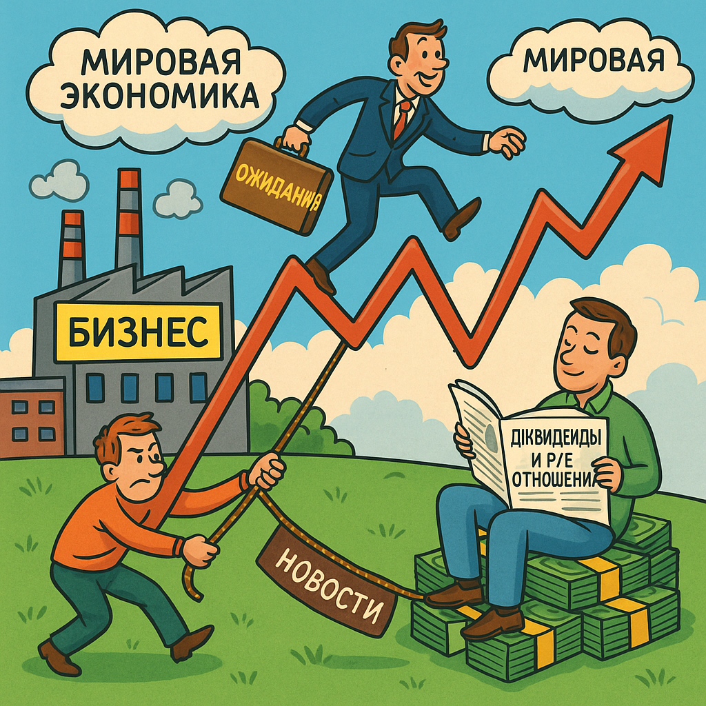 Если ты когда-нибудь открывал приложение брокера и смотрел на стоимость акций, то наверняка задавался вопросом: а почему «Газпром» стоит 140 рублей, а какой-нибудь «Яндекс» — почти 5000? Неужели «Яндекс» круче? Нет. Это не битва понтов. И цена на акцию — это вовсе не "оценка по красоте" от каких-то невидимых экспертов. Тут работает настоящая экономика, психология и иногда даже коллективное безумие. Давай разберёмся по-человечески: от чего на самом деле зависит стоимость акции. Самое важное: акция — это кусок бизнеса. Купил акцию — стал совладельцем. Пусть на один ноготь, но всё же. Поэтому и цена зависит от того, насколько этот бизнес ценный, прибыльный и надёжный. Если компания: — её акции будут стоить дороже. Это как в жизни: продукт с хорошей репутацией и спросом не может стоить копейки. Пример: у «Сбербанка» миллиардная прибыль каждый квартал. Поэтому его акции держат в портфелях как надёжный актив. А вот акции завода, который вчера открыли в гараже в Саратове — стоят меньше