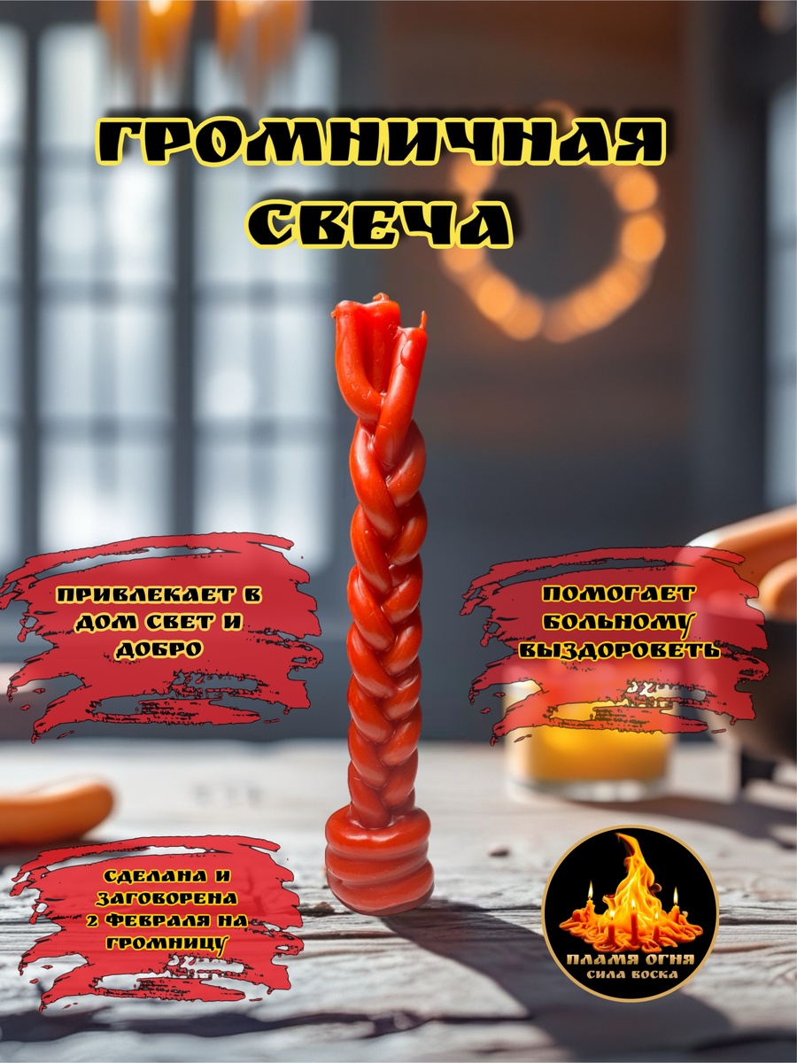 🔥🕯 ГРОМНИЧНАЯ СВЕЧА делается 2 февраля и сохраняет свою силу весь год. В противоположность очищающей чёрной четверговой свече громничная свеча даёт светлое благословение. И даже больше — громничная свеча может и чистить как чёрная свеча (если водить ею противосолонь), и она же даёт благословение (если водить ею посолонь). Даже незажжённая, она является магическим предметом, охраняющий дом от внешних гроз — в прямом и переносном смысле. По форме и размерам эти свечи могут быть самые разные. Часто они делались из трёх свечек, сплетённых в «косу» и расходящихся кверху маленьким Трезубцем — символом единства Тремирья (Яви, Нави и Прави). В громничных свечах виден образ Мирового древа — древо Поко