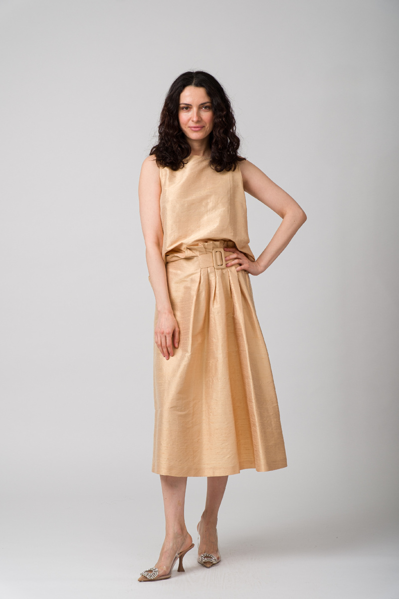 Лаконичный прямой крой, без рукавов, глубокий вырез горловины и лёгкий блеск шёлка. - Юбка BL-LUZ-SS-205
