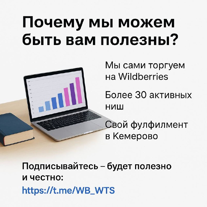 Вот тема: Почему мы можем быть вам полезны? Мы — не теоретики. Мы сами торгуем на Wildberries, у нас более 30 активных ниш и свой фулфилмент в Кемерово. Когда-то мы теряли деньги, получали штрафы и лили бюджет “в никуда”. Сегодня — мы знаем, как не надо. И именно это знание помогает другим продавцам расти быстрее. У нас есть: – свой юрист – доступ к новостям и инсайдам – реальные кейсы – практика без обещаний “миллионов за месяц” Подписывайтесь — будет полезно и честно: https://t.me/WB_WTS К ней картинку