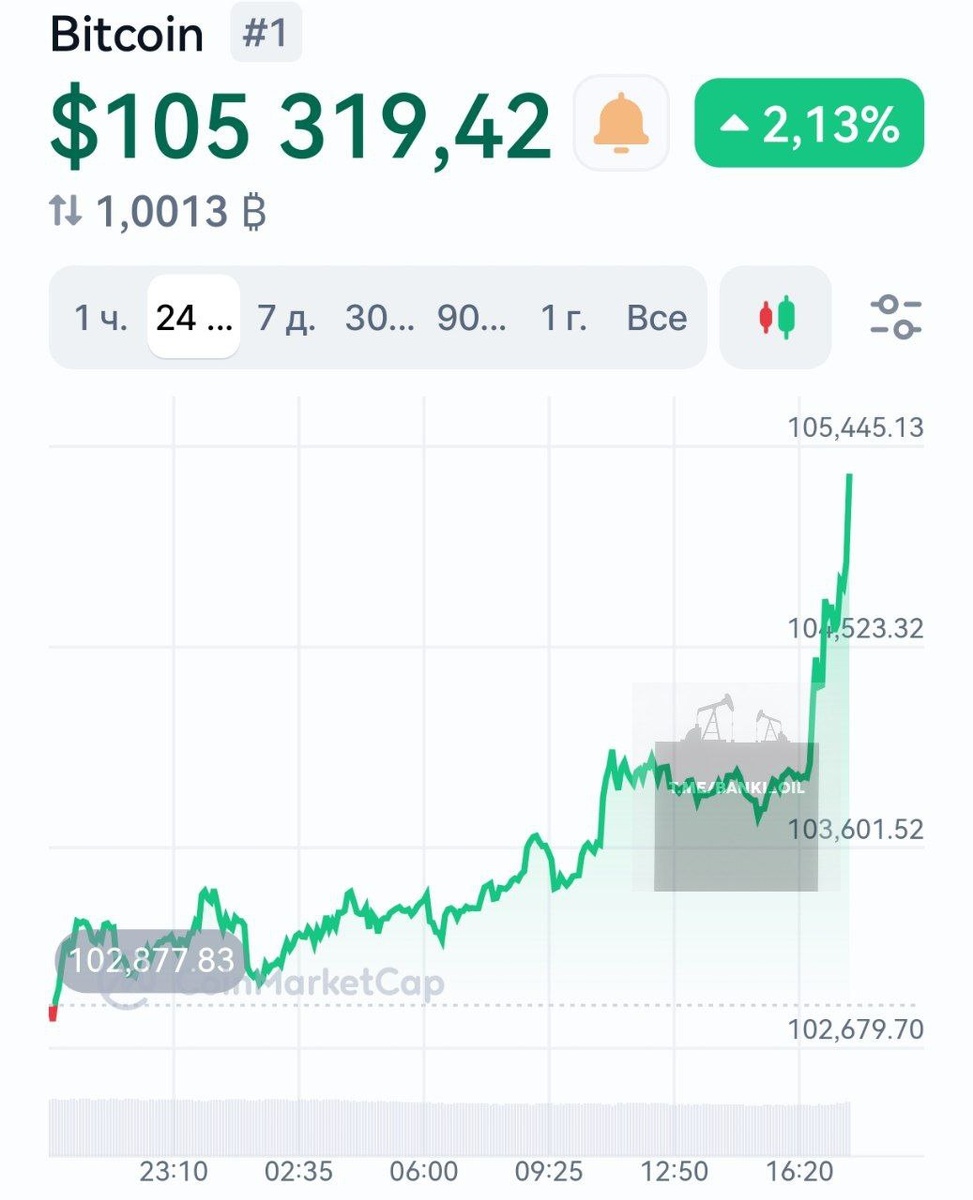 Биткоинподнялся выше $105 000 впервые с конца января.
