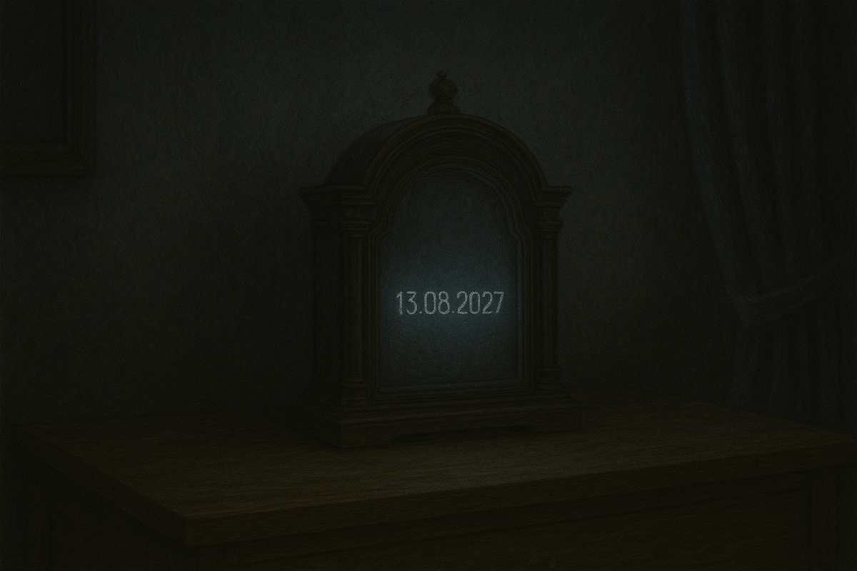 На чердаке бабушкиного дома Олег нашёл странные часы. Настольные, массивные, с рельефным циферблатом, но без стрелок. Вместо привычного механизма — гладкое стекло, под которым едва заметно мерцали цифры. Он подумал, что это старинная поделка, принёс домой, протёр, поставил на полку. Через пару часов на циферблате появились числа: 13.08.2027. Ни названия месяца, ни времени, ни секунд. Только дата. Он показал их Алине, своей девушке. Она пожала плечами — может, китайский будильник с глюком. Но Олегу было тревожно. Эта дата была впереди, ровно через два года. На следующий день цифры исчезли. Осталась пустота. Олег поставил часы в ящик. Забыл. Но когда спустя месяц их случайно нашла Алина, и включила — там стояла уже её дата. 07.01.2026. Они поссорились. Она обвиняла его в шутке. Он клялся, что не трогал. Спустя неделю она уехала. Через полгода погибла в автокатастрофе. Ровно в тот день. Олег не трогал часы больше года. Но они сами включались. Всегда ночью. Всегда показывали чью-то дату. С