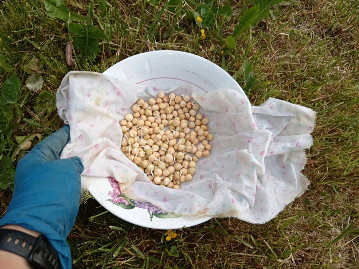 Привет, друзья. С приходом тепла начинается активная пора посева овощных культур. Сегодня решила поговорить о горохе, поскольку многие спрашивали, как правильно посадить, чтобы не ждать долго всходов. Поделюсь своим опытом посева гороха. Горох всходит на второй день в случае, если посевной материал проращиваем. Для этого в тарелку кладу х/б ткань и увлажняю, насыпаю горох и сверху прикрываю тканью и смачиваю обильно водой. В этом процессе важно, чтобы горох не был в воде, а был во влажной ткани. Если горох залить водой, то он задохнется от нехватки кислорода и не прорастет. Во влажной ткани горох оставляю на 1-2 дня. Как только появляются ростки провожу посев. При посеве гороха важно учитывать прогрелся грунт или нет. Земля должна прогреться минимум на 12-15 градусов. В теплой и влажной почве пророщенный горох довольно быстро всходит. Поэтому важно соблюдать данные условия. Горох хорошо растет на солнечном месте и хорошо заправленной почве. Поэтому выбираем место на огороде, вносим