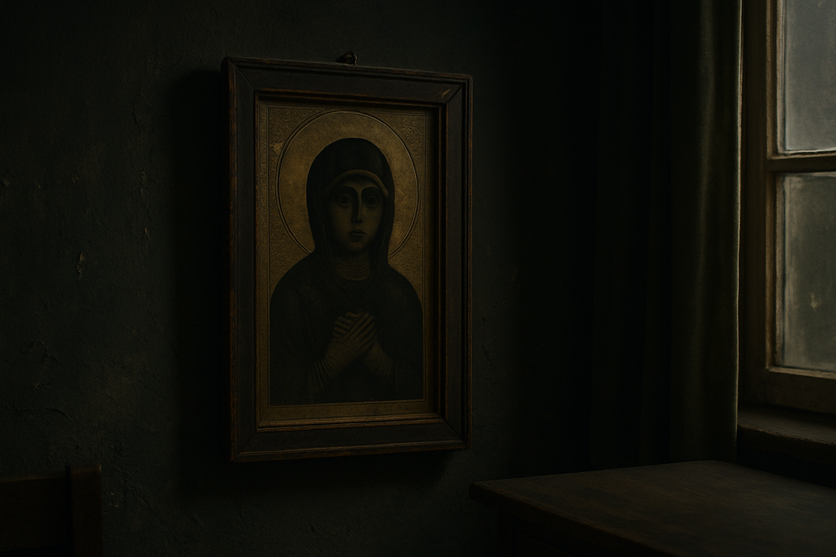 С тех пор икона висит в доме одна. Комната пустует. Даже коты обходят стороной. А если вдруг кто-то заходит — первое, что замечает, это глаза. И уходит. Потому что в этих глазах нет жалости. Только ожидание.