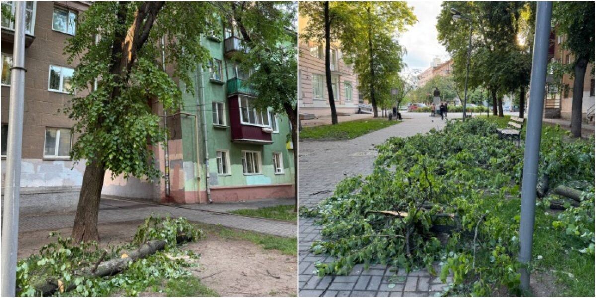 Ветки дерева снова рухнули из-за сильного ветра в Центральном районе Воронежа