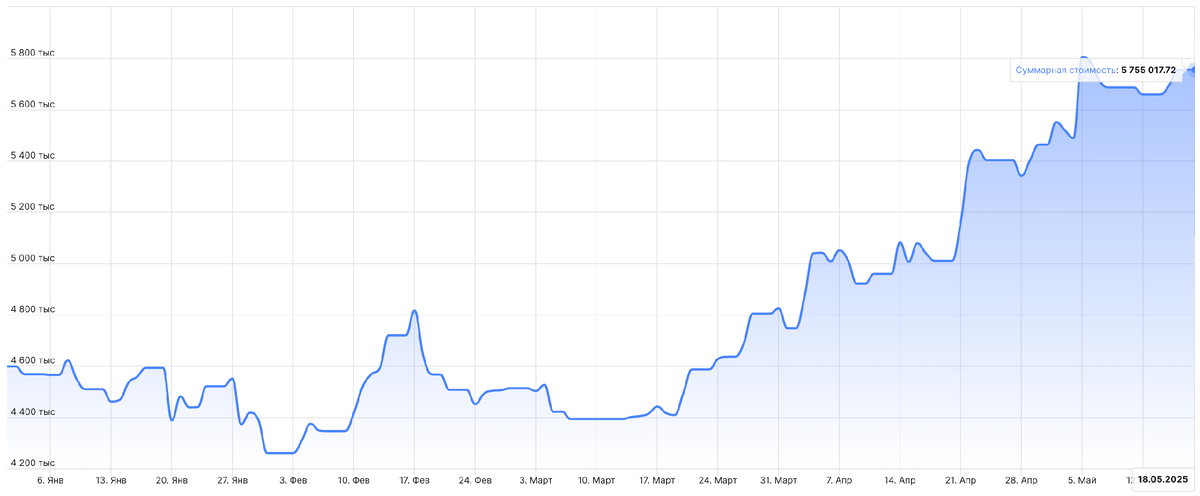 В понедельник в ожидании переговоров между Россией и Украиной спекулятивно покупал акции Газпрома. Частично зафиксировал убыток руками, частично по стопу, когда рынок развернулся после сильного гэпа. До четверга стоял в сторону в ожидании результатов или какой-то конкретной информации из Стамбула. После выступления Зеленского перед переговорами, я лишний раз убедился, что ничего из этого не выйдет и открыл короткие позиции по Мечелу и Ростелекому. В пятнице на снижении рынка, начал частично фиксировать прибыль. Полностью закрыл шорт в момент объявления о завершении переговоров. Шортить в продолжение, откупать, ловить развороты не стал. Ждал официальной информации, заявлений президентов. В результате спекулятивный портфель прибавил всего +1,21% или +69 131,9 руб. – до 5 755 017,72 руб. Для сравнения, индекс МосБиржи за этот же период снизился на -0,37%. Считаю, что мог отработать лучше, но была высокая неопределённость и волатильность. Поэтому не стал увеличивать риск. В субботу вышли н