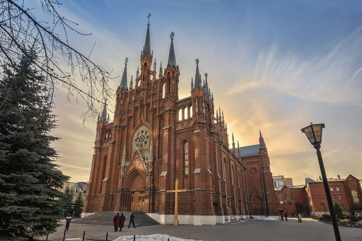 👷 Архитектор: Ф.О. Богданович-Дворжецкий Крупнейший католический собор России вдохновлён Вестминстерским аббатством и Миланским собором. Его стрельчатые окна, витражи и остроконечные шпили создают ощущение, будто вы перенеслись в Европу. Сегодня здесь проходят мессы на разных языках, а также концерты органной музыки. 📍 Дольская ул., 1