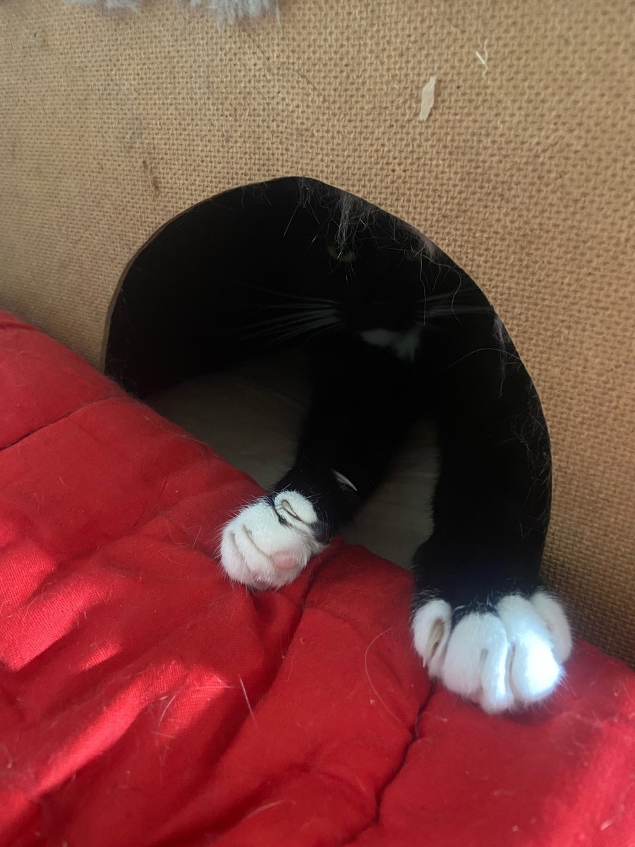 Кто-кто в теремочке живет? Чьи лапки? #котик #лапки_царапки #спрятался #отдых