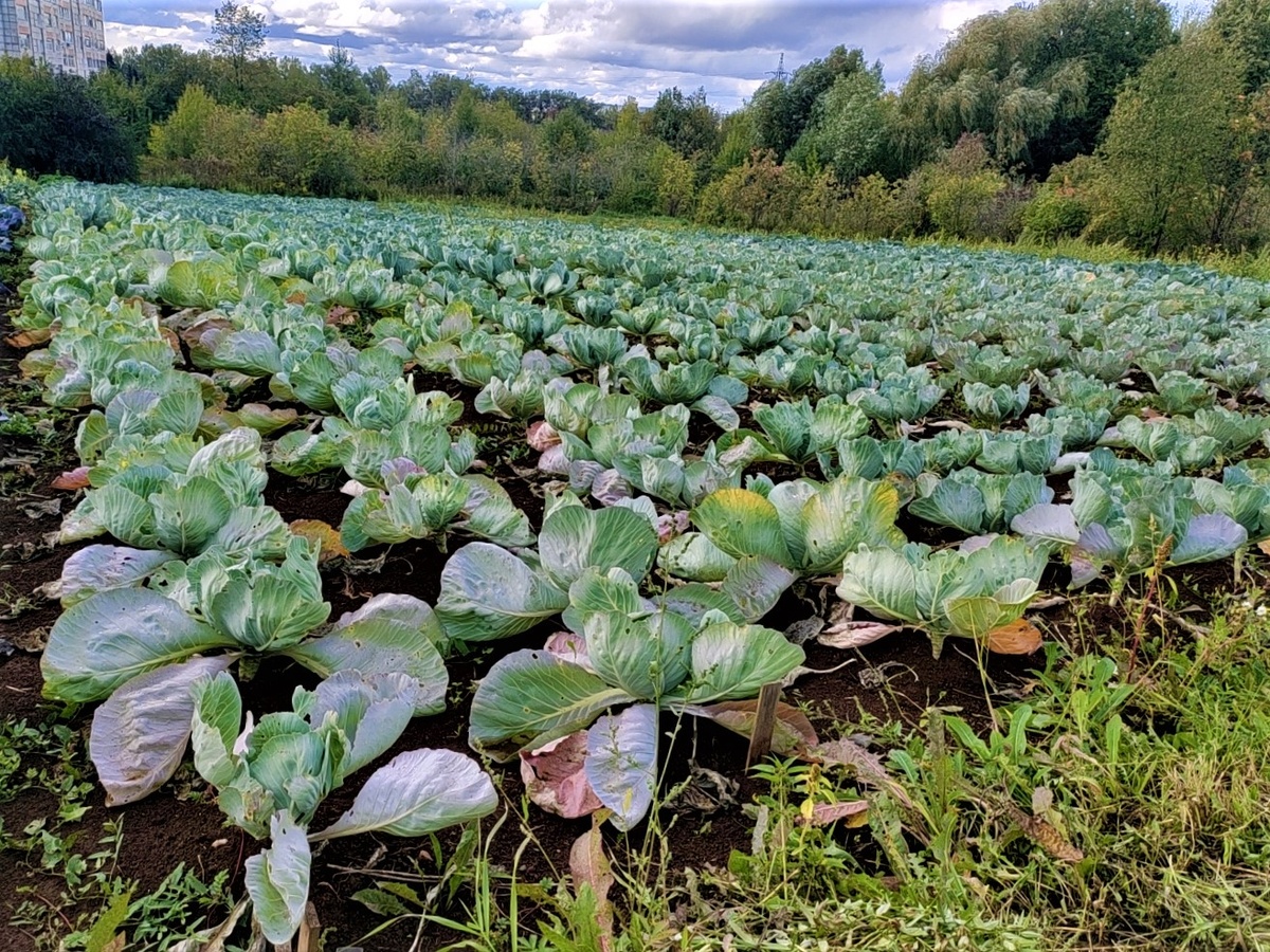 Так мы обеспечим длительное и сбалансированное питание капусты. Кочаны вырастают крупными. Плотными и сладкими.
