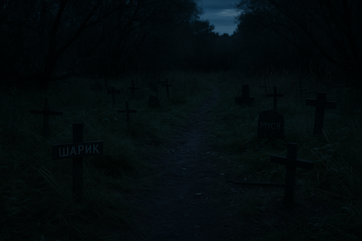 За посёлком был овраг. Заросший, тёмный, с поваленными деревьями и ржавым забором. Местные дети туда не ходили. Говорили: «Кладбище». Но не человеческое. Там хоронили домашних животных. Собаки, кошки, попугаи — всё, что когда-то радовало и внезапно умерло. Ольга купила дачу недалеко от той стороны. Хотела тишины, уединения. Соседи сразу предупредили: «По тропе на юг не ходите. Особенно после дождя. И особенно ночью.» Конечно, она пошла. Днём, с собакой. Грунт был сырой, под ногами кости — старые, щёлкали, как сухие ветки. Местами попадались таблички: «Шарик», «Муся», «Ричи». Даты стирались, но на некоторых была надпись: «Вернусь». Собака скулила, вела себя странно. Потом вырвалась и убежала обратно. Ольга вернулась с чувством, будто кто-то идёт за ней. Но повернёшься — никого. Только хруст травы, будто в противоход шагов. Ночью она услышала, как по двору кто-то ходит. Мягко. Без обуви. Потом — скребётся в дверь. Она подумала — собака. Открыла. Пусто. Только на пороге — следы. Маленькие