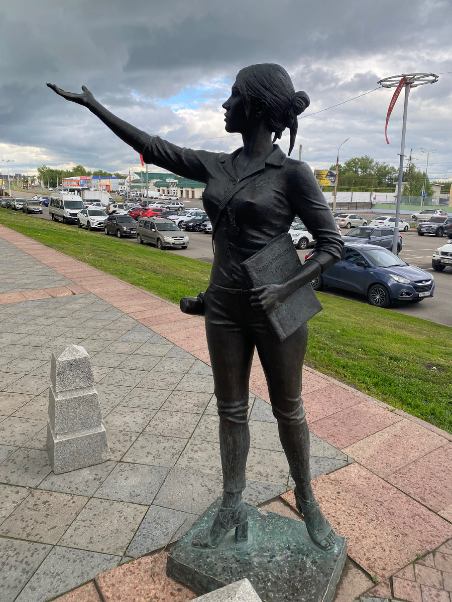 Скульптура «Девушка-гид» **Памятник гиду-экскурсоводу** расположен возле гостиничного комплекса и встречает всех прибывающих в город. Скульптура изображает молодую девушку с картой города в руках и приветливой улыбкой. Она словно приглашает гостей познакомиться с историческими достопримечательностями Орла.Скульптурная композиция «Вокзал для туристов» **Исторический вокзал** представляет собой уменьшенную копию старинной железнодорожной станции с настоящим паровозом маршрута «Орёл-Париж». Вокруг вокзала размещены фигуры людей в исторических костюмах начала XX века. Композиция воссоздает атмосферу прошлого и напоминает о том, что Орёл был важным транспортным узлом на пути из Москвы в Европу. Особенно примечателен паровоз, который когда-то действительно курсировал по этому маршруту, связывая Россию с Парижем. Скульптура «Чиновник и предприниматель» **Символичная композиция** изображает двух фигур: чиновника и предпринимателя. Они стоят друг напротив друга, держа песочные часы.
