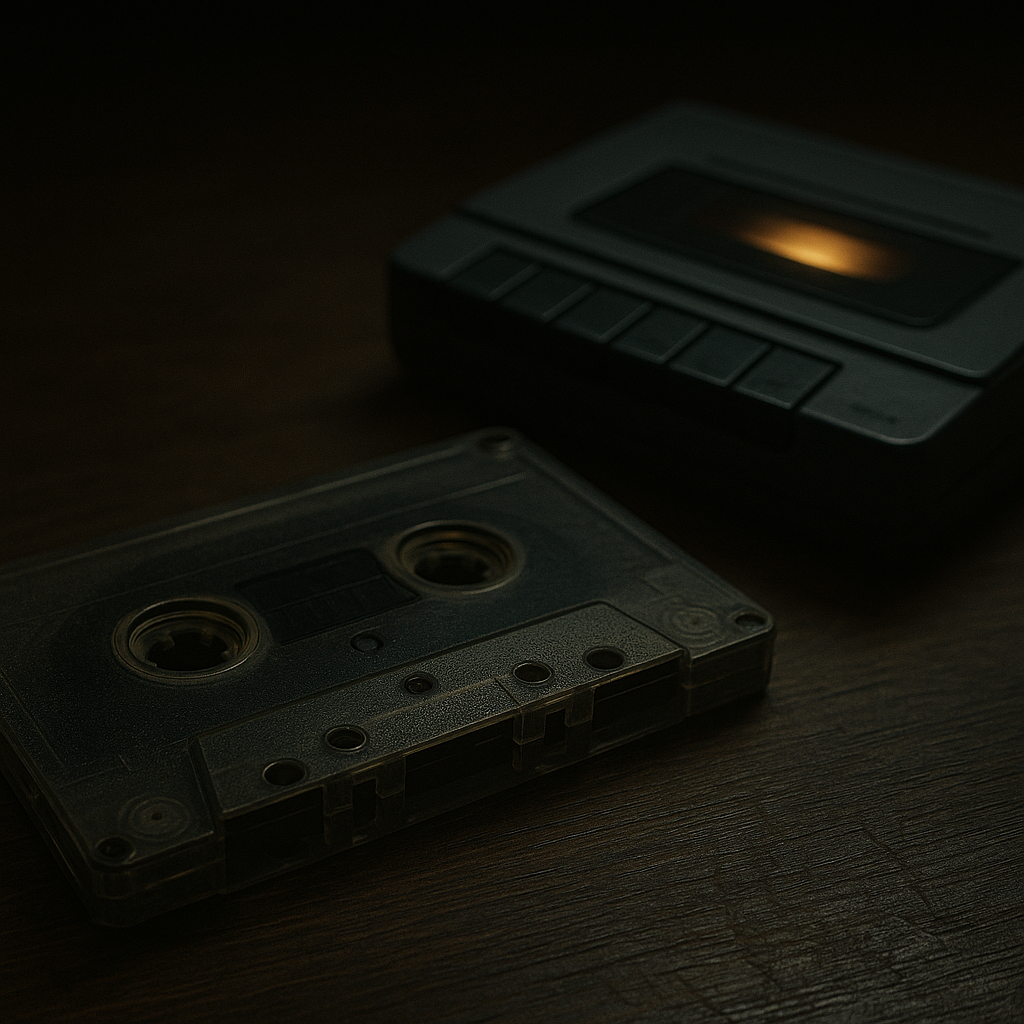 Антон нашёл кассету в старом доме бабушки. Лежала под комодом, в пыльном чехле. Без подписи. На чёрной ленте — только один номер: 0. Он не придавал значения. Просто забрал как винтажную вещь — хотел послушать из любопытства. Плеер был у него старый, рабочий. Вставил кассету. Нажал «Play». Из наушников полилась музыка — медленная, тягучая, без слов. Лёгкие аккорды, будто кто-то играет в соседней комнате. А потом — голос. Не пение. Шёпот. «Слушаешь? Я уже рядом.» Он снял наушники. Кассета продолжала крутиться. Нажал «Stop» — не сработало. «Eject» — нет реакции. Он выключил плеер. Музыка всё ещё шла. Из динамика. Без питания. Выдернул батарейки. Тишина. Облегчение. Но через час снова услышал ту же мелодию — уже из соседней комнаты. Плеер лежал на столе. Без питания. Без ленты. Снова заиграл трек. Только теперь — с искажениями. И голос стал ближе. Слов больше не было. Только дыхание. Он казался всё ближе и ближе. Антон пытался сжечь кассету — та не горела. Размотал — лента вела себя, как п