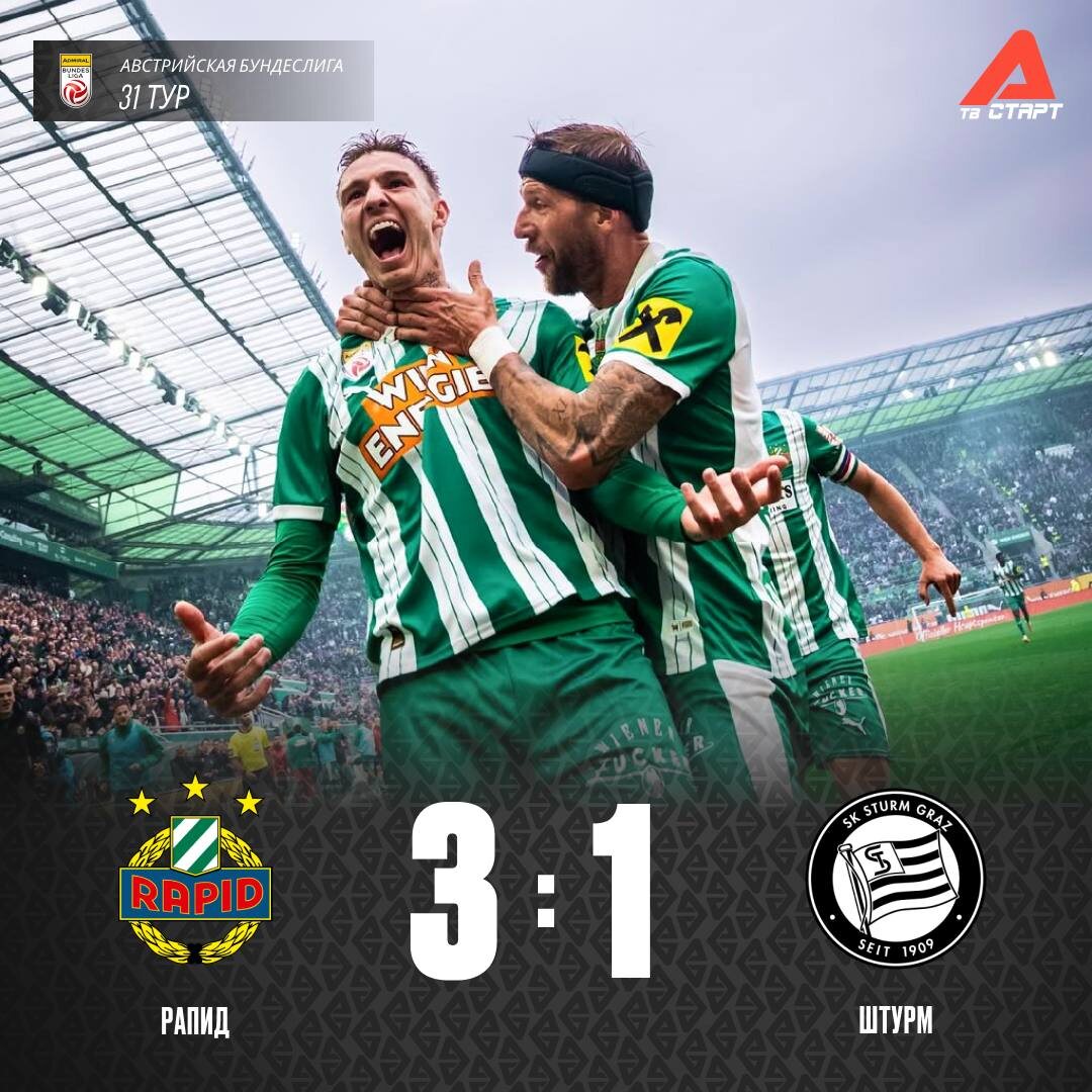 👀😤 Чемпионство «Штурма» откладывается Команда Дани Худякова крупно влетела в гостях «Рапида», а в параллельном матче «Австрия» обыграла «Вольфсбергер» 🔥 Все решится в заключительном туре — смотрим развязку австрийской Бундеслиги на TVSTART.RU 📺 🛒 Наше приложение в Google Play 💙 Наше приложение в RuStore 🛒 Наше приложение в App Store