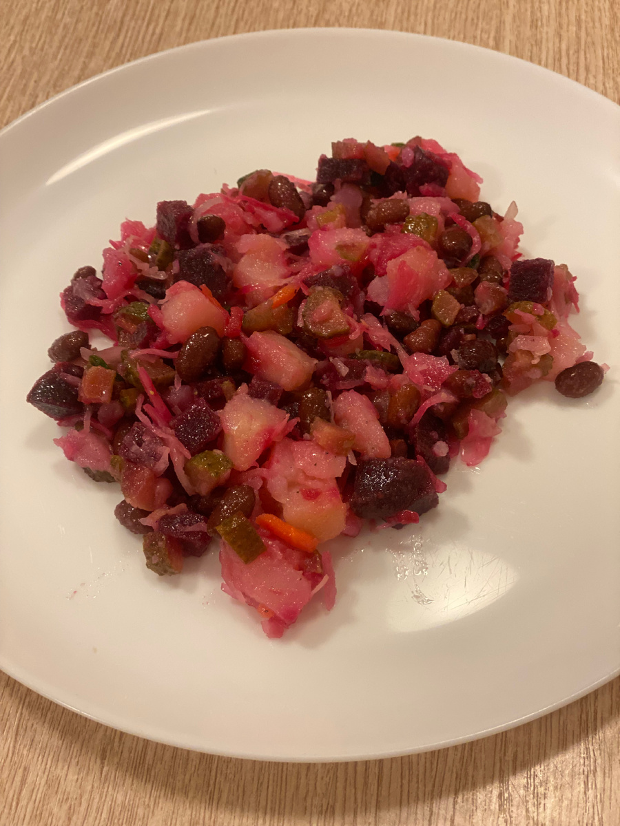 Винегрет — это простой, вкусный и полезный салат, который знаком каждому с детства. Его готовят из отварных овощей, заправляют растительным маслом и подают как холодную закуску. Блюдо идеально подходит для повседневного стола, а также для постного и вегетарианского меню.