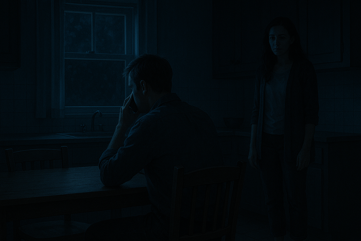 Я не сразу поняла, что он встаёт каждую ночь. Сначала думала — кошмары. Ну или воды попить. Всякое бывает. Но потом стало... системно. Как будто у него внутренний будильник: 3:14. Чётко. Каждый раз. Будто он настроен на этот момент — не раньше, не позже. Странно. Жутковато даже. Он вставал, тихо, почти беззвучно. Подушка ещё хранила его тепло, когда дверь спальни — щёлк. И я оставалась одна. В темноте. Слушая, как скрипит пол. Раз, два... Кухня. Я не лезла. Ну правда. Мы же взрослые. Свобода, личное пространство, все дела. Но на пятую ночь я не выдержала. Может, потому что уснуть не могла. Может, потому что тишина давила так, что в голове звенело. А может — просто что-то внутри щёлкнуло. Я встала. На цыпочках. Как в детстве, когда пробираешься за шоколадкой. Пол холодный, сердце — глухой барабан. Всё будто замедлилось. Он стоял у окна. Спиной ко мне. Телефон в руке. И... шептал. Кому-то. — ...да, просто... сегодня лучше. Я смог уснуть до двенадцати. Это прогресс, да? И паники почти не