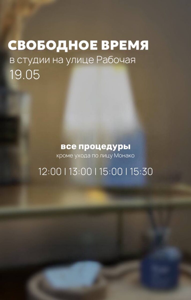 СВОБОДНОЕ ВРЕМЯ НА РАБОЧЕЙ 19.05 • ONLINE запись • WHATSAPP Ждём вас к нам на процедуры 🤍