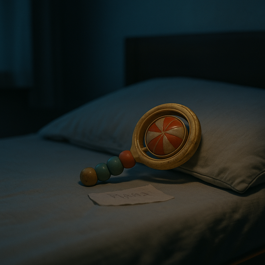 Когда Кира нашла эту погремушку, она не сразу поняла, что с ней не так. Обычная — пластик, слегка пожелтевший, с прорезиненными шариками внутри. Ни батареек, ни чипов. Нашла случайно, разбирая коробку с вещами младенца, который у них так и не родился. Положила на полку. В ту ночь не спала. Не могла. В голове — гул. Мысли текли, как мутная вода, всё тревожили пустые стены детской. И когда наступила настоящая тишина — не просто внешняя, а внутренняя, глухая — она услышала это. Лёгкий дзинь-дзинь, как будто кто-то встряхнул игрушку. Вскочила, включила свет — никого. Погремушка лежала на месте. Рядом с выключенным ночником. Утром попыталась встряхнуть её сама. Ничего. Ни звука. Как будто шарики внутри слиплись. Списала на усталость. Положила обратно. Но ночью — снова. Когда в квартире наступала мёртвая пауза — игрушка звенела. Ровно, уверенно. Как будто кто-то играл. Или звал. Кира установила камеру. Безрезультатно. Ни движения. Ни вибрации. Но микрофон зафиксировал звук. Отчётливо. Дзинь.