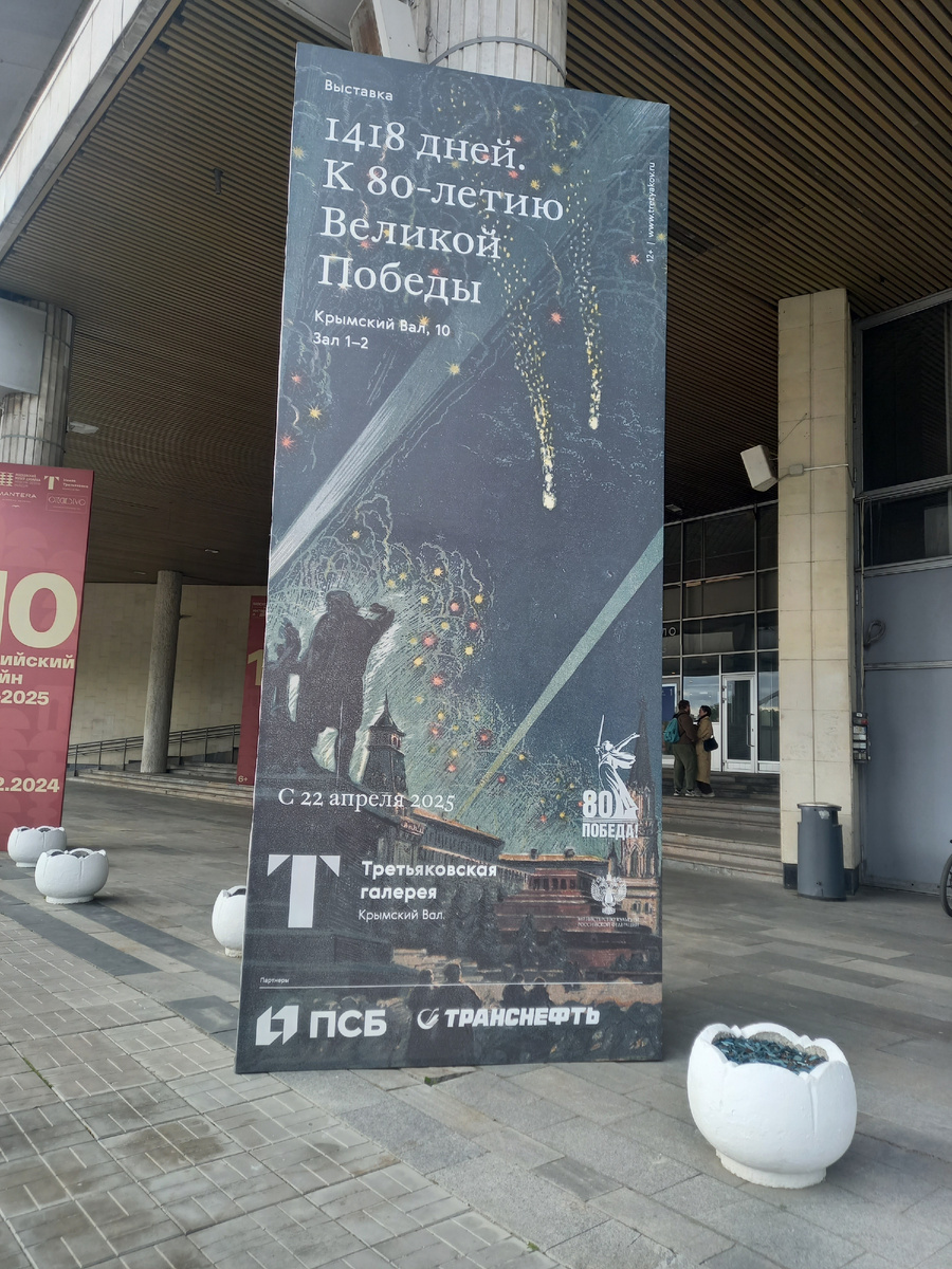 Мы уже рассказывали, что на Крымском валу, в здании современной Третьяковки открылась грандиозная выставка, посвящённая 80-летию Великой Победы. Мы на неё попали бесплатно 9 мая, но это была разовая праздничная акция, а так билеты со стандартной для Третьяковки ценой. Приехали мы на неё уже несколько подуставшие, потому что уже успели за день пройти ещё одну выставку и посетить праздничный концерт в Театриуме на Серпуховке. Честно говоря, не ожидали, что выставка окажется такой большой. Конечно, многие произведения этой тематики мы знаем, особенно старшее поколение или те, кто учился в советской ещё школе. Те же "Парад на Красной площади 7 ноября 1941 года" или "Парад Победы". Это всё грандиознейшие и известнейшие картины. Но сколько еще неизвестного для широкой публики! А Третьяковская галерея хранит огромное количество предметов искусства, и это не только картины, по этой тематике. Авторы их, по большей части, сами прошли войну, или были в тылу, но тоже оказались причастны к трагед
