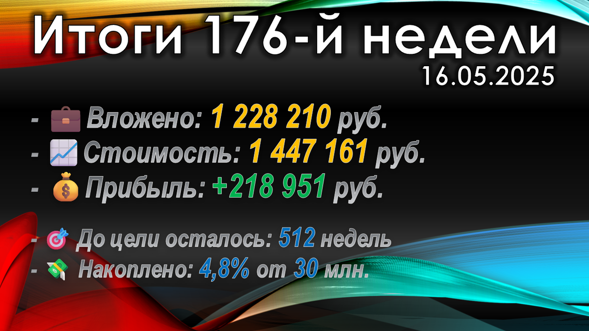 - 📌 Инвестировано: 1`228`210 руб. (+8`000 руб. за неделю)