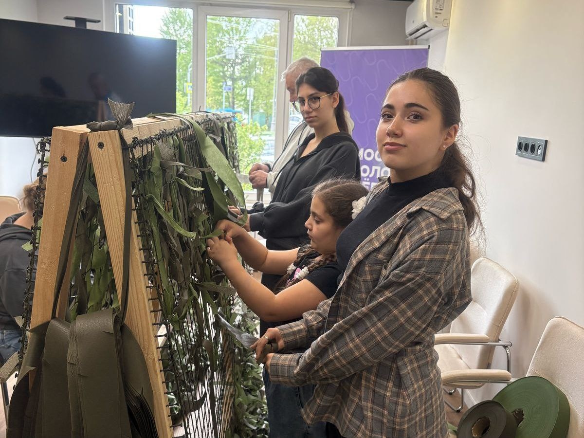☘️Школьный волонтерский отряд "Доброе дело" совместно с "Мосволонтер" плетут маскировочные сети для бойцов СВО.