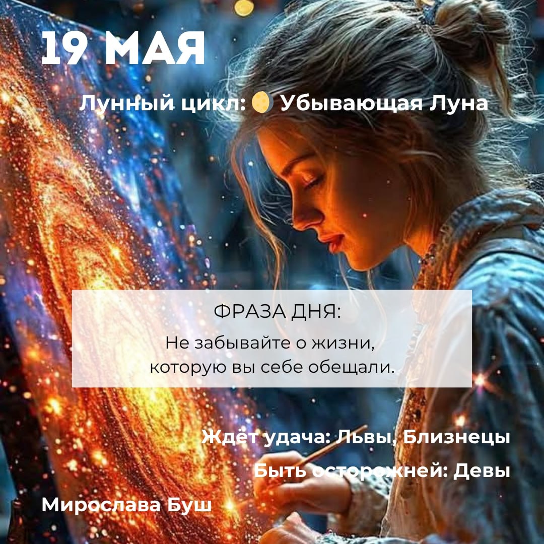 19 мая РЕКОМЕНДАЦИИ: ⚠️ Не проводите сегодняшний день в одиночестве. Иначе весь год так и просидите в четырех стенах одни. 🪙 Чтобы привлечь деньги, сегодня нужно купить красный или коричневый кошелек. Положите его на подоконник на ночь под свет луны. Если у вас такой уже есть, то можно не покупать. ✉️ Подписаться на Мирославу #прогнознадень