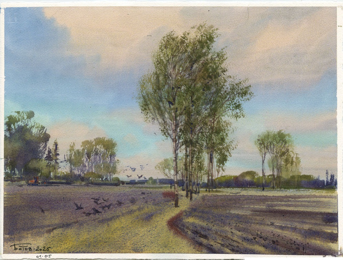 Весенний сюжет с демо на открытии выставки в Ижевске "Современная акварель на родине Чайковского". 28х38 см / watercolor. Краски Pinax Extra. Бумага 100% хлопок Палаццо 300 гр. Конструирование пейзажа. Constructing an imaginary landscape. #акварель #живопись #watercolor #pinax_extra #palazzo_watercolor_paper #Изо #watercolorsketch #ArtBatDiversion #artLesson #мастеркласс