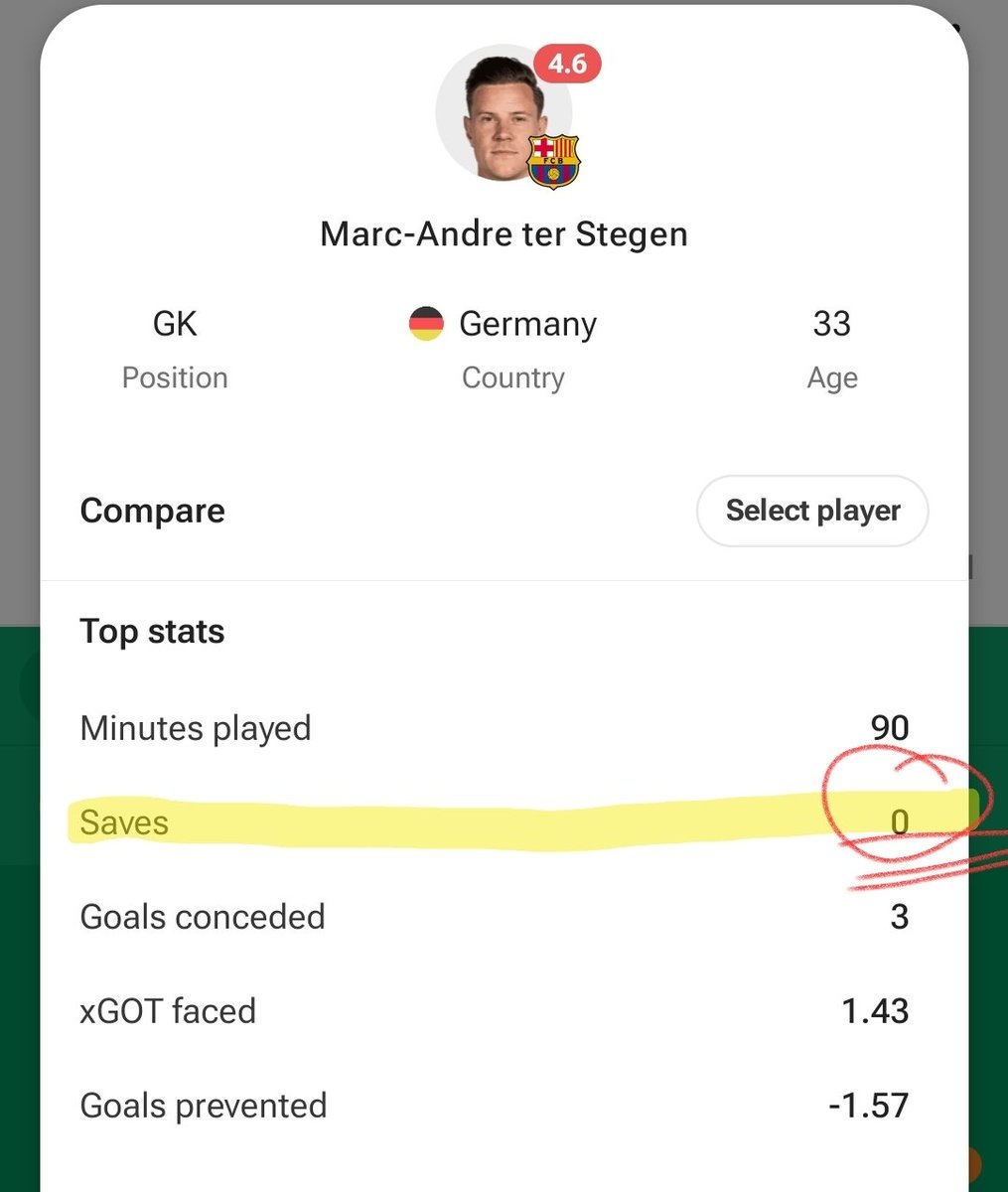 👎 Первый домашний матч тер Стегена с августа: 0 сейвов и 3 пропущенных. Все еще отпускаете Шченсны? 😵