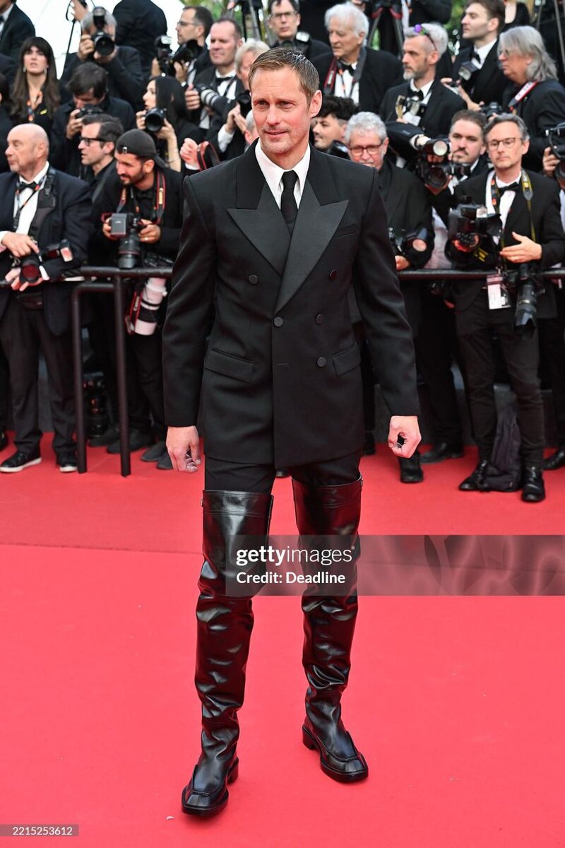 Главный для нас гость "Финикийской схемы" (помимо Марка Эйдельштейна, конечно) - Александр Скарсгард, герой нынешнего дня. Вы только посмотрите на эти ботфорты от Saint Laurent! Это какой же д'Артаньян на красной дорожке! Мужики, берите на заметку, доставайте рыбацкие сапоги и вперед! Еще и Педро Паскаль носил такие - а раз Батя носил, значит, можно всем!