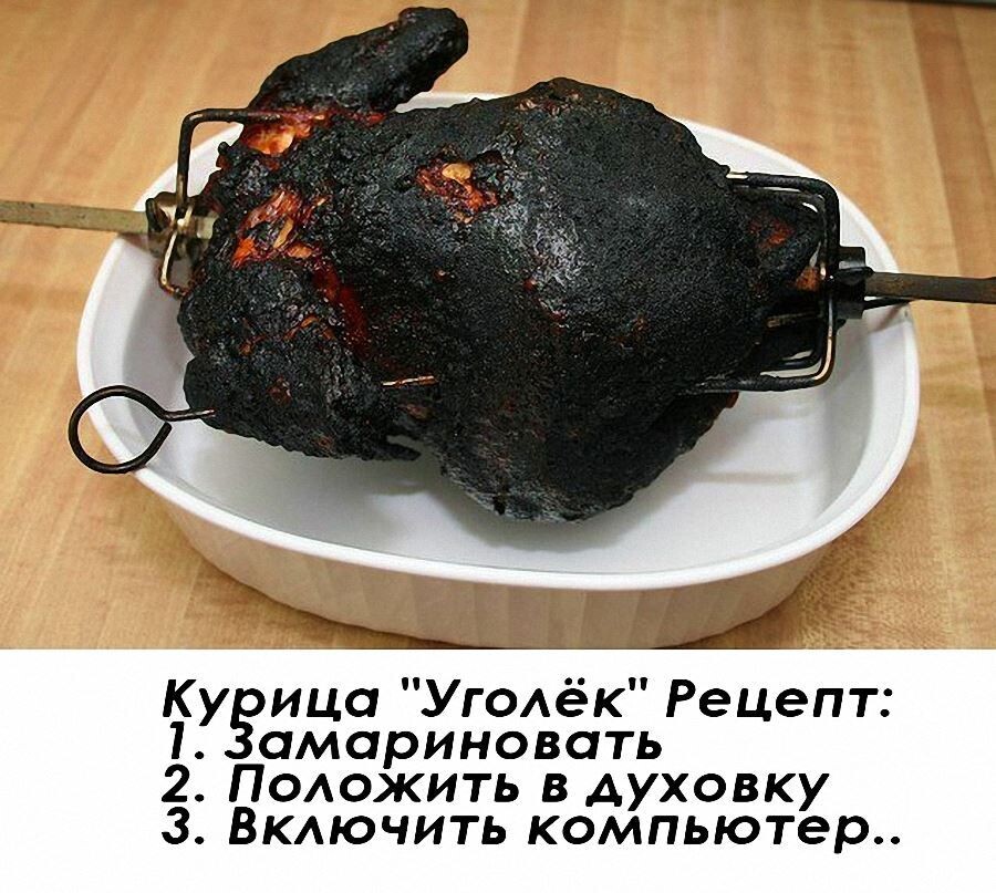 У вас было такое? Муж сказал..."Наташ, да это снаружи угольки, а внутри курица, как курица!" Ну ведь молодец же!?