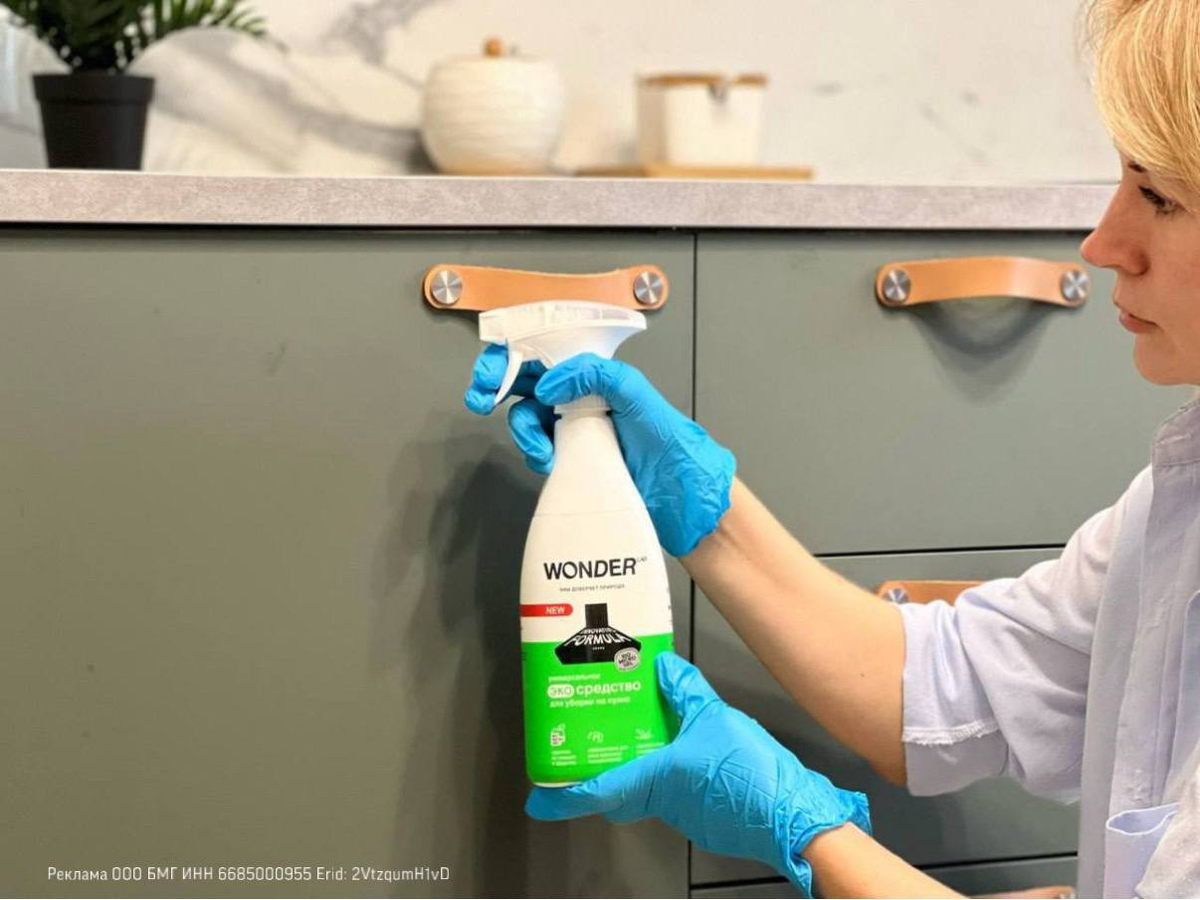 Экосредство для кухни от WONDER LAB спасает. Распыляю на поверхность, жду 5-10 минут, смываю средство влажной тряпкой и готово! Универсальный спрей моментально справляется с жирными пятнами.