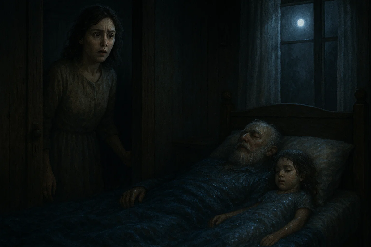 Мне тогда было уже около двадцати пяти. Оленька, дочка моя от первого брака, совсем крохой была — года три, не больше. Первый муж мой погиб, и жили мы с ней в родительском доме, с моими отцом и матерью. Дом тот старый, ещё прадед строил, и, знаешь, всегда в нём что-то странное творилось, но об этом я тогда особо не задумывалась. Жили и жили. А вот одна ночь мне до сих пор покоя не даёт — такая она была жуткая и непонятная.