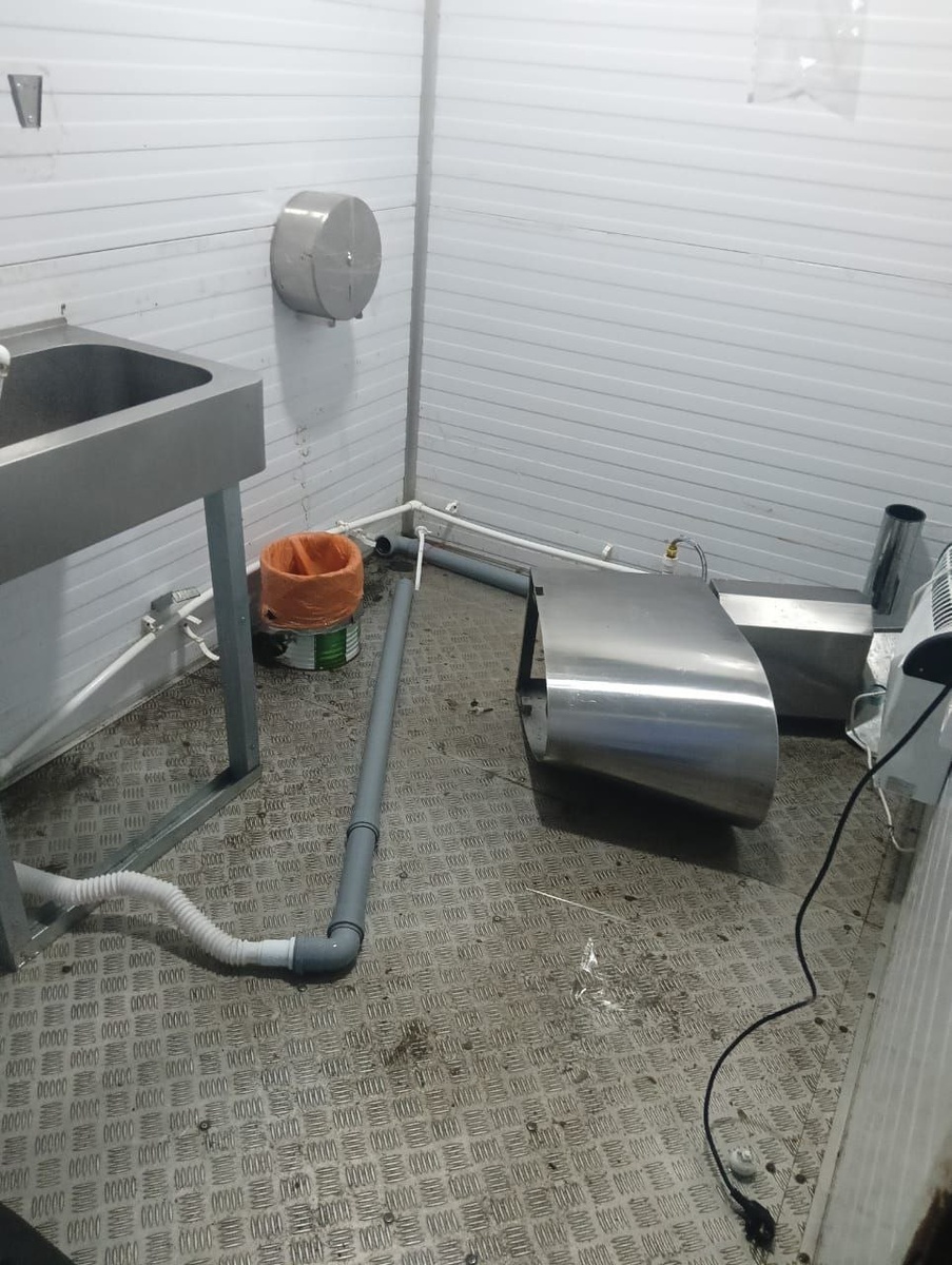 В двух кабинках вырваны унитазы, сломаны раковина и сантехника