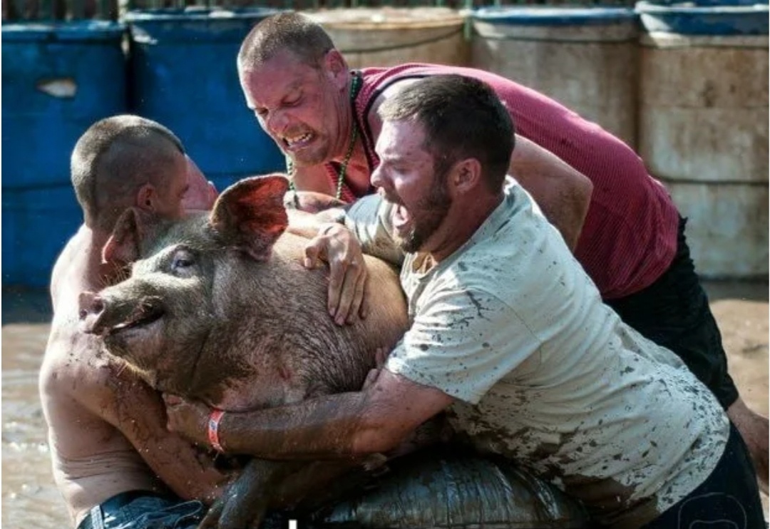 Как то днем, во время обеда услышал я дикий визг соседской свиньи. Так как резать ее должны были соседи только через месяц, я заинтересованный выбежал во двор. Через забор наблюдаю картину: человек пять мужиков обступили хрюшку и что-то с ней делают. Перепрыгув к соседу и спросив, что ж они собираются с ней сделать, я долго хохотал. Оказывается, решил сосед водки выпить. Не один, соответственно, с друзьями. После энного количества бутылок закончилась закуска. Ничего лучше не придумав, мужикм решили завалить свинью. Не найдя ножа, решили ее задушить. Представьте картину : Двое мужиков держат ее за ноги, один душит, один в пятачок два пальца засунул (как потом хозяин объяснил - чтобы прекратить доступ кислорода к мозгу ), а один бегает кругами и орет : - Веселей мужики! Души ее чертяку! Свинья, при этом активно отбивается. Кончилось все тем, что извернувшись, она лягнула хозяина, причем попала прямо между ног. После этого он потерял всякую охоту закусывать свининой