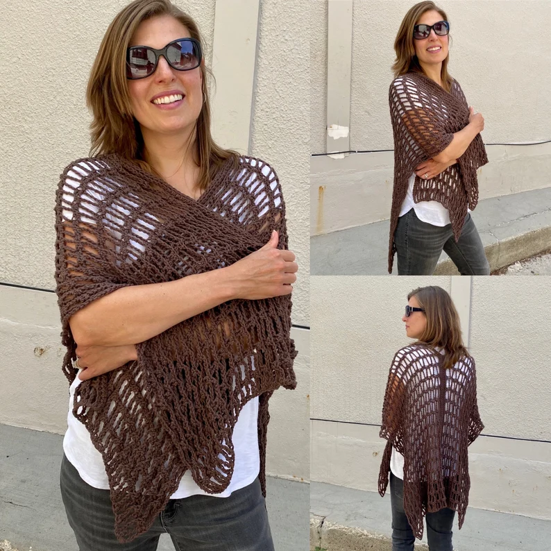 Дизайн KnotYourselfOut на Этси или в Пинтерест. Какая миленькая вещичка! Два палантина, соединенных до середины. Или можно связать сразу на всю ширину спинки, а для полочек разделить вязание пополам. Мне кажется, эта конструкция удобнее привычной треугольной шали. Восхитительное пончо! Узоры могут быть любыми (можно связать и другими инструментами). Думаю, лучше начать с квадрата. Палантин с карманами. Всё очень просто, узор можно использовать любой. Можно и спицами. и тунисом связать. Думаю, пряжа должна быть достаточно толстой (хотя бы от 300м/100г). Просто широкий шарф или палантин, но понравился простой узор с дырками, который можно применить где-то ещё (туника, сумка...) Два ряда столбиками с накидом (похоже, что за заднюю стенку столбика) и ряд с чередованием трёх столбиков с накидом и трёх воздушных петель. Очень простой шарф, но выглядит неплохо, особенно если подобрать цвета. Вяжется сразу по всей длине и цвет пряжи меняется очень легко. Ещё один шарфик: Туника или накидка н