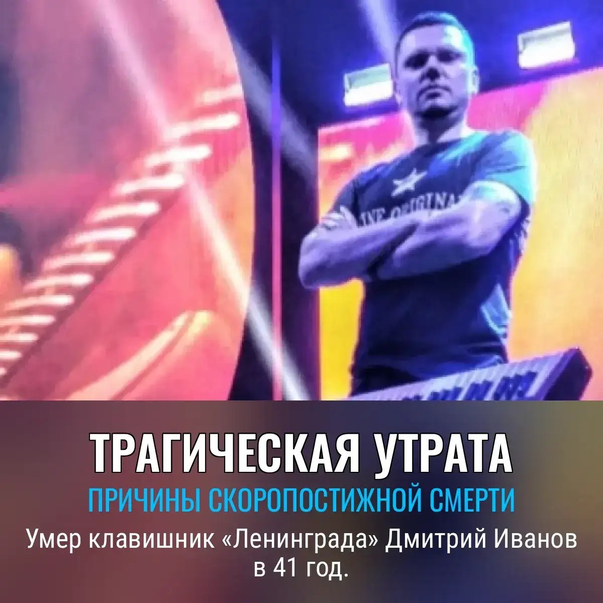 Причиной внезапной смерти 41-летнего клавишника «Ленинграда» Дмитрия Иванова стала аневризма.😢 Сестра музыканта, Анна Бегунова, сообщила, что сосуд разорвался, несмотря на здоровый образ жизни и спорт. 🚴♂️ В ночь на 29 апреля произошел разрыв сосуда и кровоизлияние в мозг. Врачи боролись за жизнь музыканта почти три недели, но не смогли его спасти. 💔 «Он работал не только с „Ленинградом“, но и с другими артистами», - отметила сестра. Кто бы мог подумать? Творческий человек с множеством планов ушел так рано...😞 Автоматически становятся бессмертными только после смерти. Следите за новостями 📩
