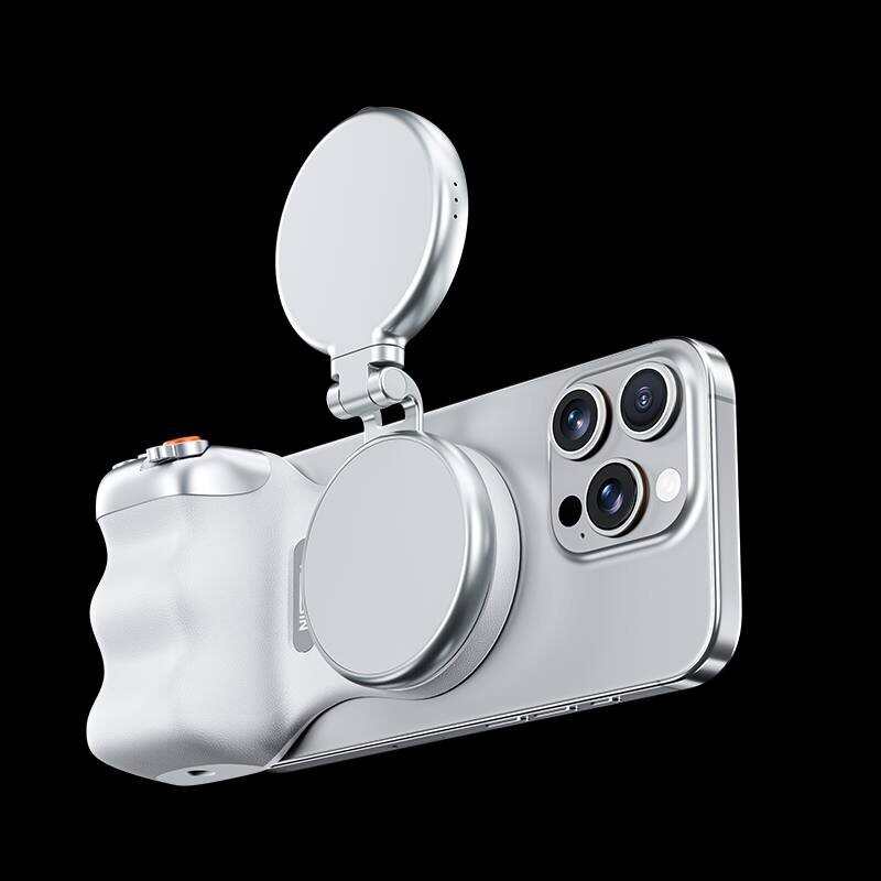 Магнитная ручка для iPhone. Крепится с помощью MagSafe, подключается по Bluetooth. В каталоге масса вариантов магнитных аксессуаров для фото и видео. Благодаря MagSafe может быть закреплена в вертикальной и горизонтальной ориентации. ➡️легкое управление зумом ➡️управление похожее на классическую камеру Сайт производителя https://telesin.com Найти Telesin можно на маркетплейсах.