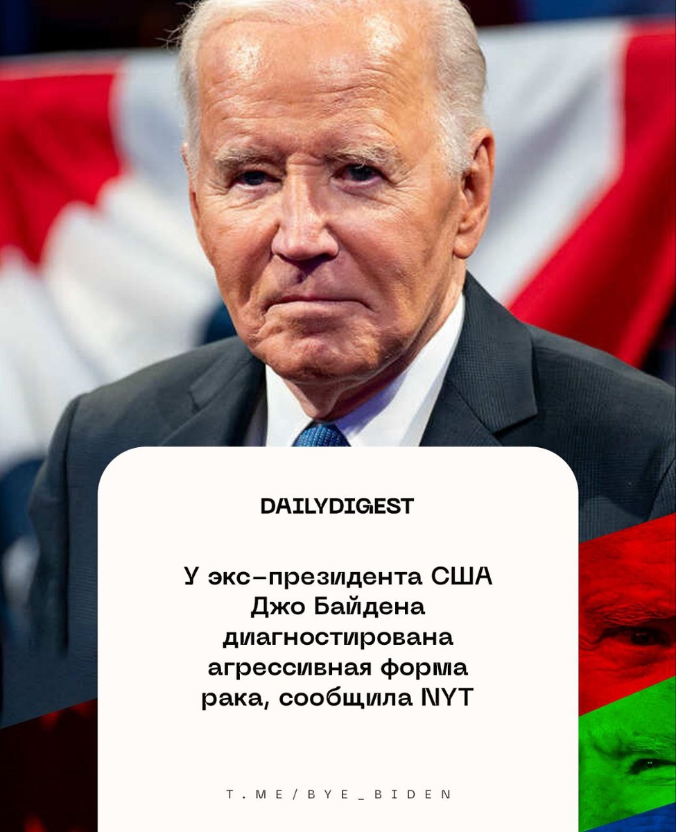 ☑️Главные новости на утро 19 мая: 🔹У экс-президента США Джо Байдена диагностирована агрессивная форма рака, сообщила NYT. 🔹Guardian: Стубб хотел доказать Трампу, что РФ не великая держава. 🔹Избирком Польши подсчитал более 90% голосов на выборах президента. 🔹ABC: американские чиновники разочарованы Австралией из-за отправки списанных Abrams Украине. 🔹Мэр Бухареста Дан побеждает на выборах главы Румынии с 53,60% голосов. 🔹Миссия ООН и президентский совет Ливии учредили комитет по перемирию. 🔹В понедельник стартует саммит Британия — ЕС. 👍 БайБайден. Подписаться