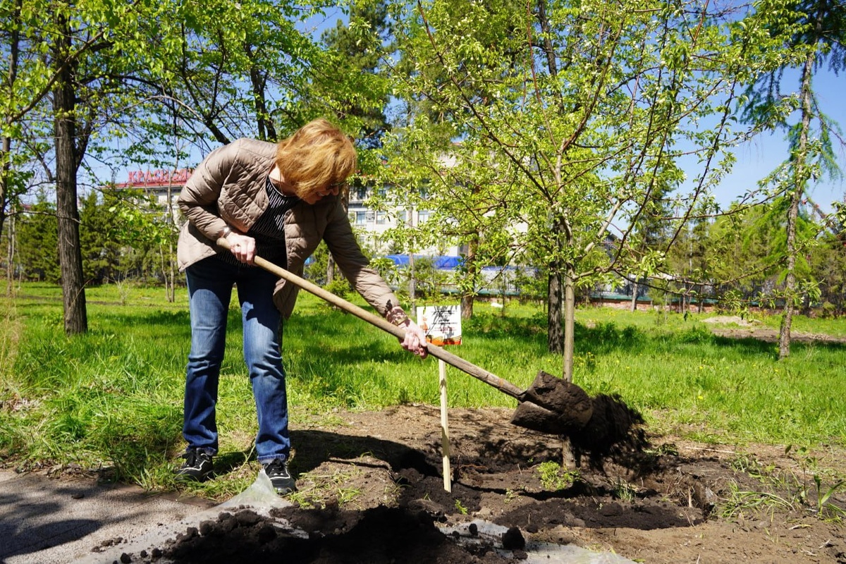 В Красноярске высадили 34 яблони в честь фронтовиков - почётных граждан города