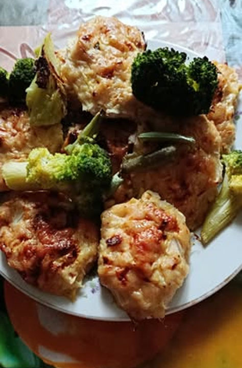 ✔ Фарш индейка+курица – 400 г; ✔ Капуста – 150 г; ✔ Лук – 1 шт.; ✔ Яйцо – 1 шт.; ✔Соль, специи – по вкусу. Дополнительно: ✔ Брокколи – 250 г. Было граммов 400 курино-индюшиного фарша. Добавила в него стакан измельчённой капусты, одну измельчённую луковицу, яйцо, соль, перец. Смешала фарш. Мокрыми руками формировала котлетки, выкладывала на противень, застеленный силиконизированной бумагой для выпечки. Еще оставалось немного брокколи. Добавила и её. Запекала при 180 градусах 35-40 минут. КБЖУ котлет (без учёта брокколи) на 100 г - 99/14,6/3,8/2,3. Рецепт на странице Автор рецепта – Людмила Гурова Расчёт КБЖУ сделан с помощью Telegram-чат-бота https://t.me/vesipitaniebot © Почтенный возраст Online и Рецепты для диабетиков