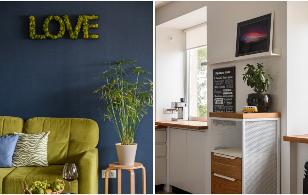 Особый шарм придают интерьеру детали, сделанные своими руками: декоративные подушки сшила сама хозяйка, а бра с отделкой декоративным мхом супруги сделали вместе на мастер-классе.