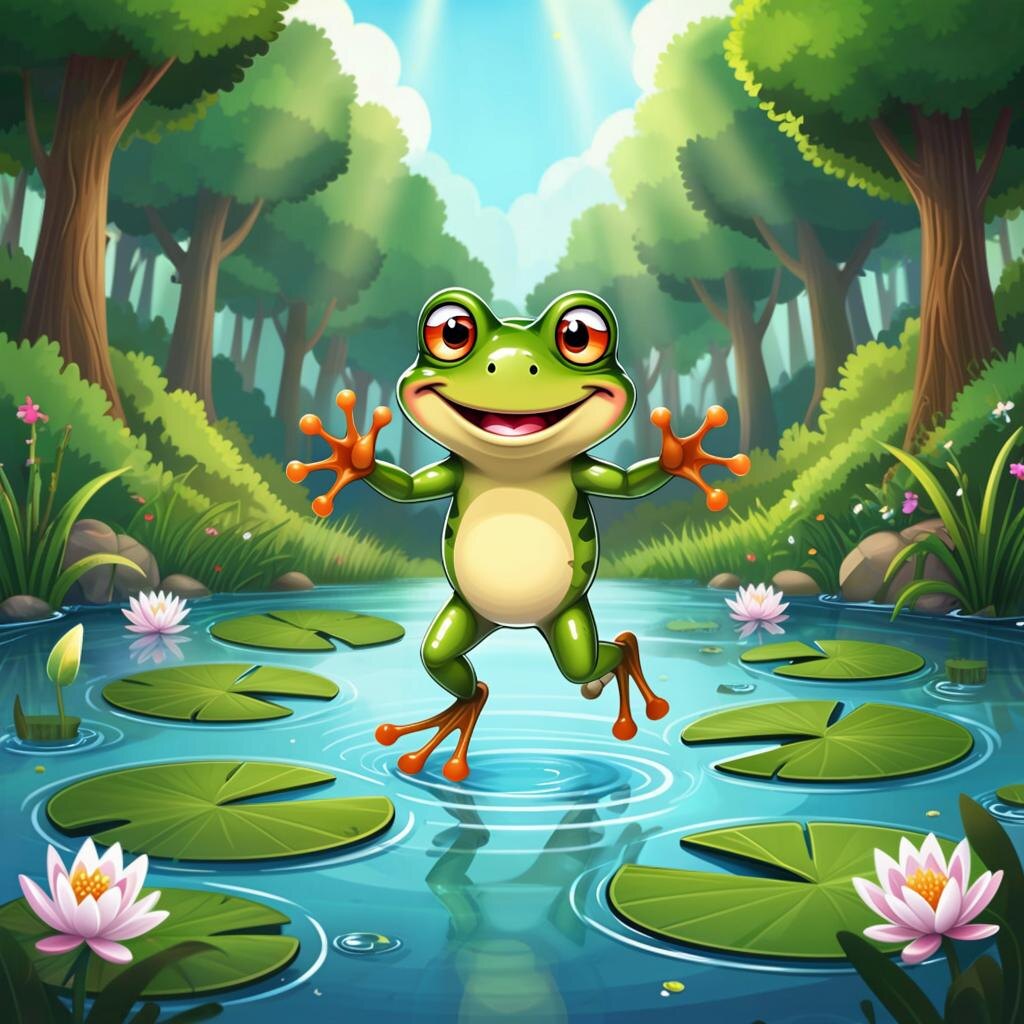 Лягушонок Жил-был маленький весёлый лягушонок по имени Кваки. Он был таким озорником, что каждый день устраивал настоящие приключения в своём пруду. Однажды, исследуя берега своего пруда, Кваки нашёл старую шляпу, которая лежала возле воды. Шляпа была необычной формы и цвета, поэтому лягушонку захотелось узнать, откуда она взялась. Он взял шляпу и отправился искать хозяина. По пути встретил белку, которая спросила: «Эй, Кваки, куда направляешься?» «Ищу владельца этой шляпы», — ответил лягушонок. «Ой, кажется, эту шляпу потерял старый ворон Карр. Он вчера рассказывал мне, что потерял её, пролетая над прудом», — подсказала белка. Кваки поспешил обратно к пруду и громко крикнул: «Карр, возвращайся за шляпой!» Вскоре прилетел ворчливый ворон и забрал свою шляпу, поблагодарив маленького героя. После этого случая весь лес узнал о добром поступке Кваки, и лягушонок стал знаменитостью. Теперь Кваки продолжал свои путешествия, помогая каждому встречному, будь то потерянная перчатка ежика или