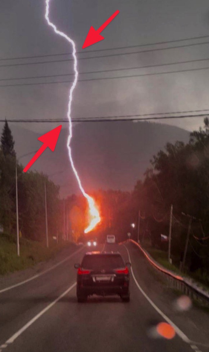 ✉️ От подписчика ❌ Этот снимок - результат простейшего наложения в простейшем фоторедакторе (не обязательно даже в фотошопе). Молния, которая бьёт в лесок находящийся метров за 200-300 от объектива, должна быть за проводами, находящимися на переднем плане. Так что ничего подобного вчера в Манжероке не было 🙃