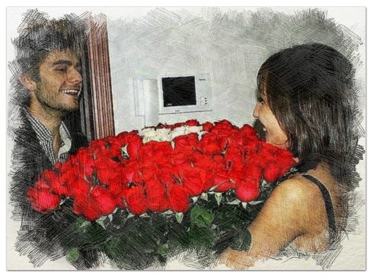 Неделю спустя я возвращалась из библиотеки, когда у общежития меня остановил Сашка. В руках он сжимал огромный букет алых роз — таких роскошных, что прохожие оборачивались.