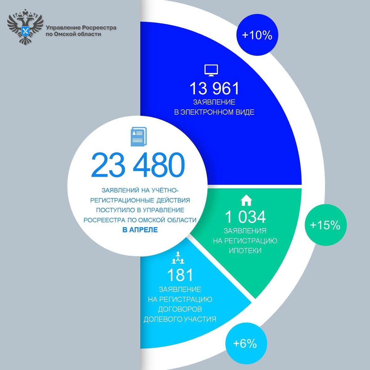 В апреле 2025 года в омский Росреестр на государственную регистрацию прав и постановку на кадастровый учет объектов недвижимости от жителей региона поступило более 23 тысяч заявлений (23 480). В сравнении с мартом число поданных заявлений возросло на 9% (21 592). В электронном виде направлено более половины пакетов документов - 13 961, или 60% от общего числа (в марте – 12 708). Количество заявлений на регистрацию ипотеки, по итогам апреля в сравнении с мартом, увеличилось на 15%. Так, на регистрацию ипотеки поступило 1 034 заявки, из которых 66% (681) – в электронном виде (в марте 2025 зарегистрировано 897 ипотек). На регистрацию договоров долевого участия в строительстве подана 181 заявка. Доля электронки от общего числа ДДУ впервые составила 100%. Покупка жилья в новостройках в сравнении с мартом увеличилась на 6% (170 заявок в марте). #Росреестр #РосреестрОмск #НовостиОмска #Омскаяобласть #СтатистикаОмскойобласти