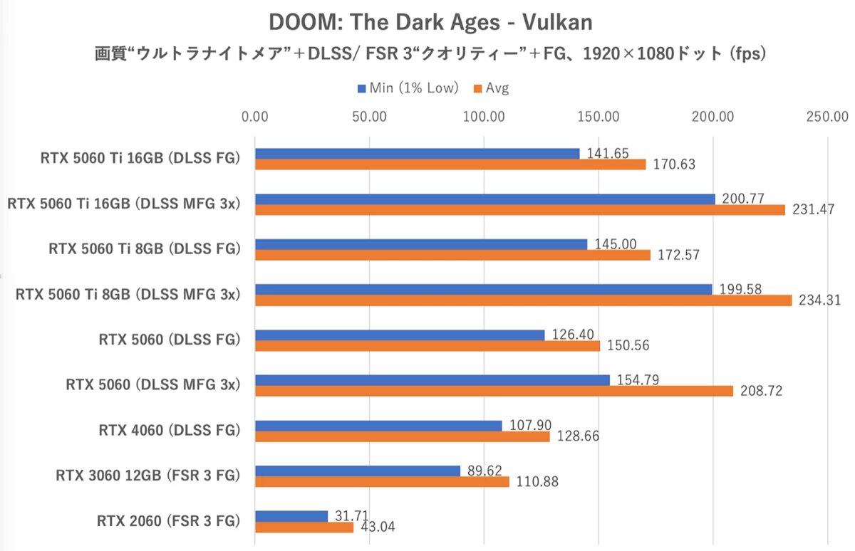 В новенькой DOOM: The Dark Ages RTX 5060 обошла RTX 4060 на 17%, в Cyberpunk 2077 — на 25%, а в Marvel Rivals — на 16%. Вероятнее всего, средний прирост производительности новинки относительно ее предшественницы не достигнет 20%, но полноценные обзоры ожидаются только через несколько дней, а значит и точную информацию мы получим только тогда.