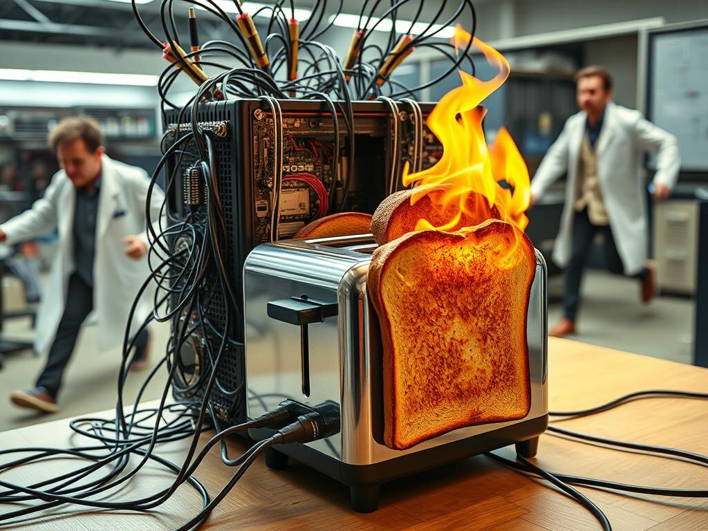 Но хватит о страшилках! Давайте вернемся к нашей главной звезде – бывшему сотруднику секретной лаборатории, которого мы ласково прозвали Тостером. После увольнения за загрузку своего сознания в тостер (да, это не опечатка!), Тостер не впал в депрессию и не стал писать жалобы в профсоюз. Он решил бороться за правду!