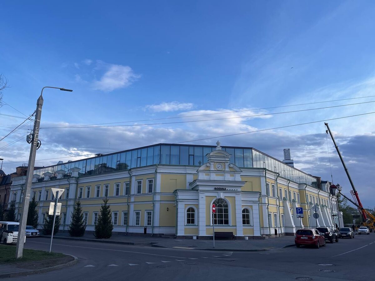Интересное соседство пятизвездочного отеля на Цесовской набережной Ангары.