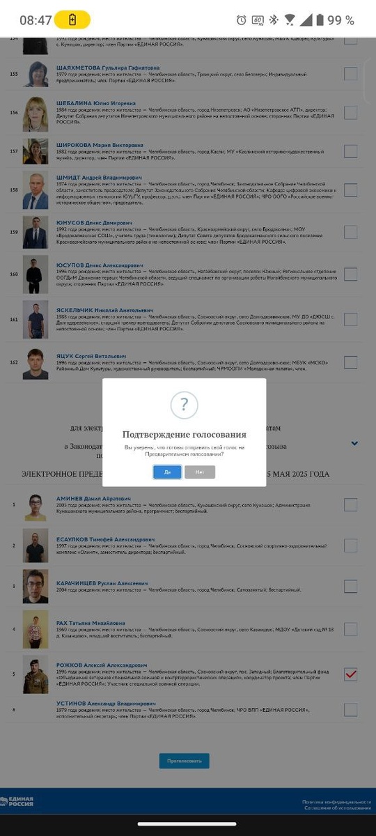 Свой выбор на предварительном Голосовании партии "Единая Россия" я уже сделал. Голосовал за своего товарища, участника Специальной военной операции в одномандатном округе, в списочной части отдал свой голос за коллег, с которыми постоянно общаюсь, работаю за тех, кто переживает за Южный Урал. Говорил и не устану повторять - горжусь тем, что работаю в большой команде партии "Единая Россия" в команде Губернатора Челябинской области, Секретаря регионального отделения партии Алексея Текслера. Призываю земляков участвовать — вместе мы формируем сильную команду для развития Южного Урала. Работаем. #ЕдинаяРоссия #ЕР74 #ЗСО74