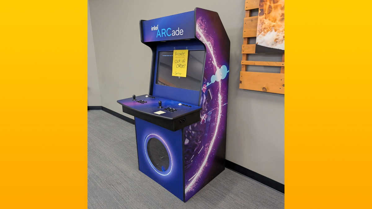 Intel представила аркадный автомат под названием ARCade, который построен на базе мини-компьютера Intel NUC Extreme с видеокартой Arc A770 из прошлой серии Alchemist.