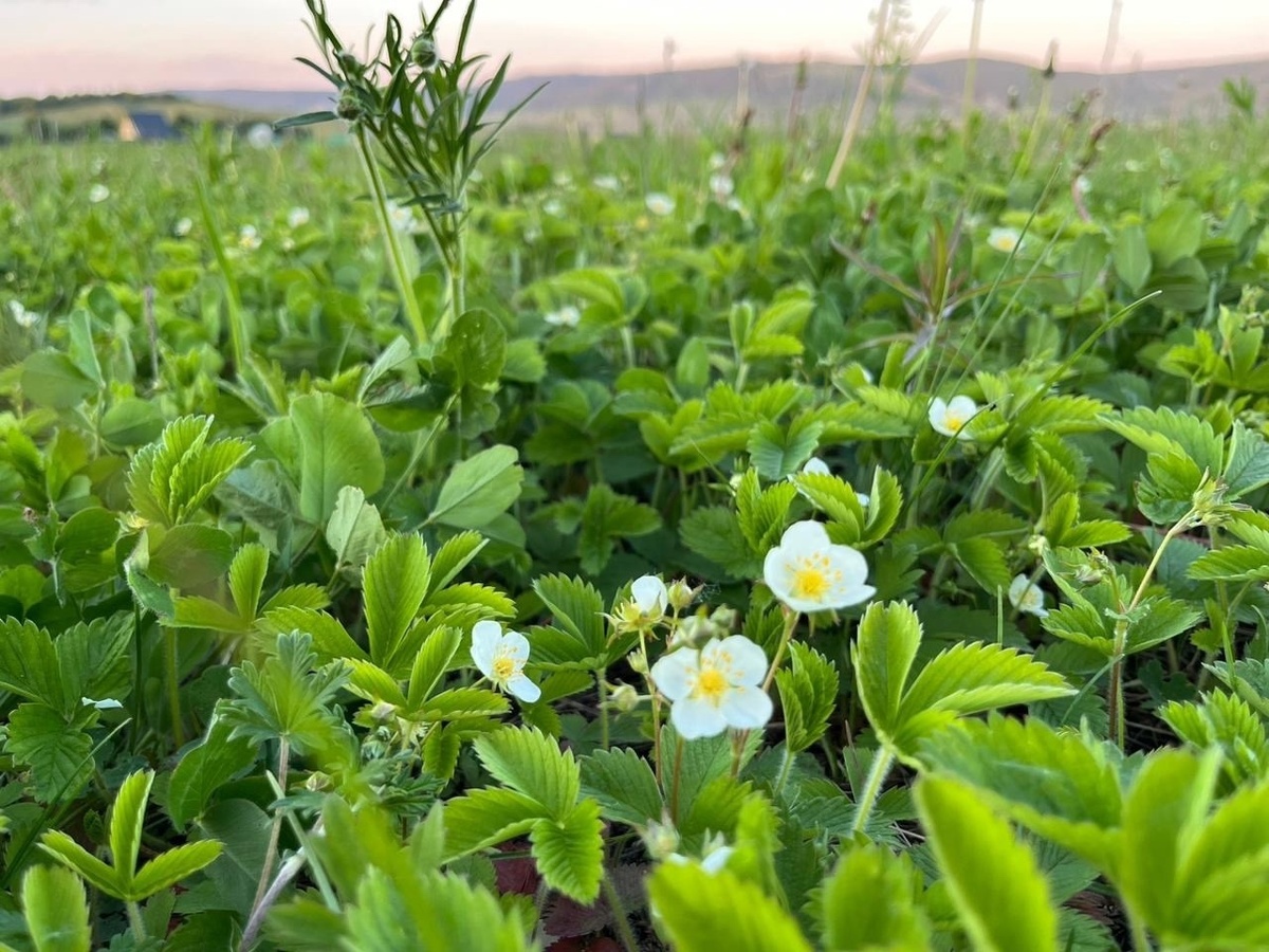 Созревает. За зелёным лесом листьев уже проглядываются краснеющие ягодки в середине мая. Это земляничное поле в Ишимбайском районе. Уже сейчас красивое, потенциально дарящее обворожительный запах и вкус земляники. Лето близко. Всем удачного и приятного дня! Фото: Гульназ Гиниятуллина